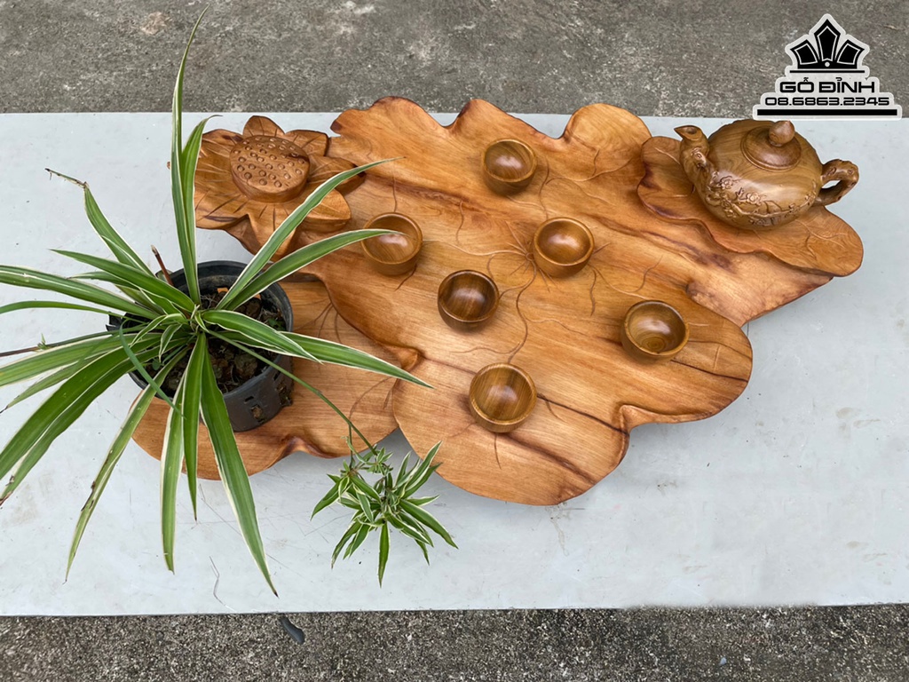Khay Trà Đục Lá Hoa Sen Gỗ Ngọc Am Cao 16 Ngang 65 Sâu 38 (cm)