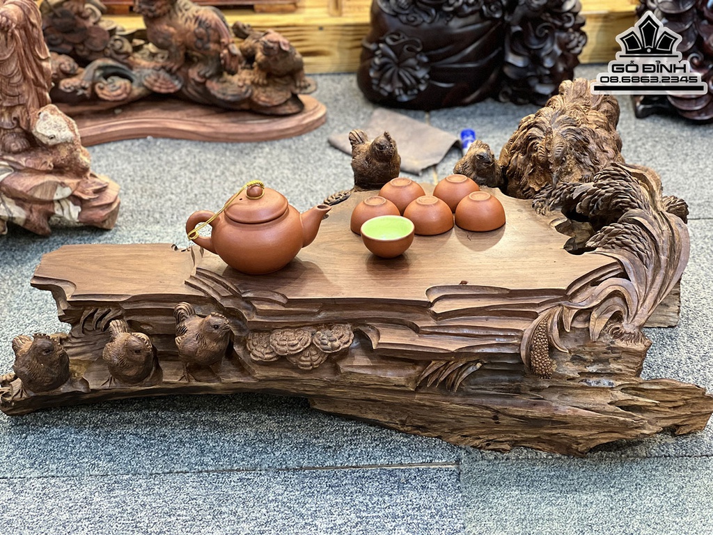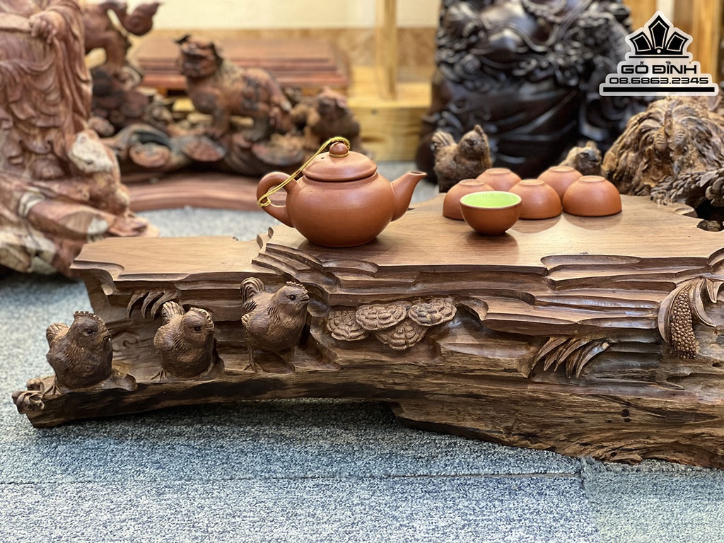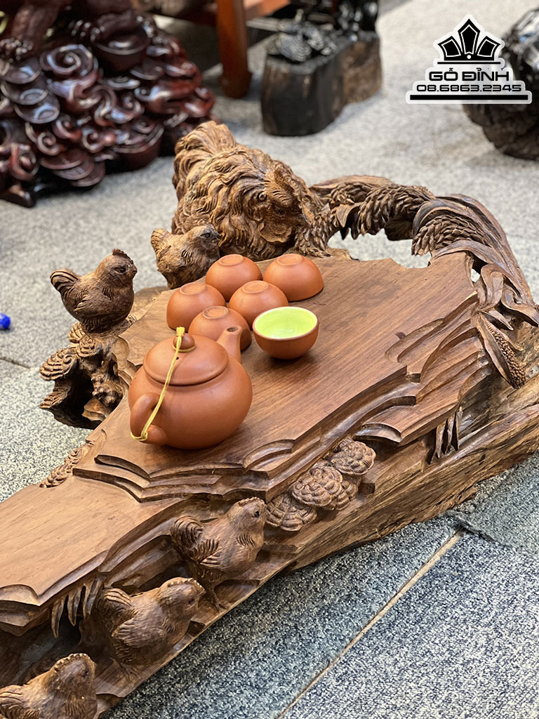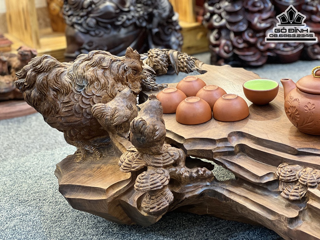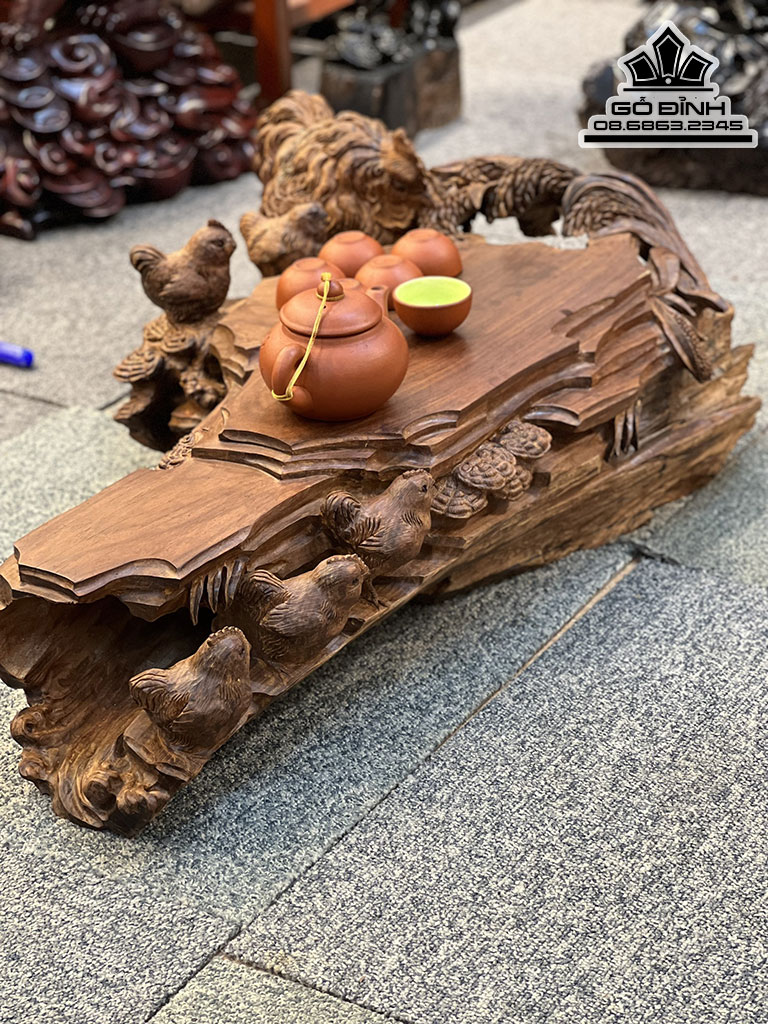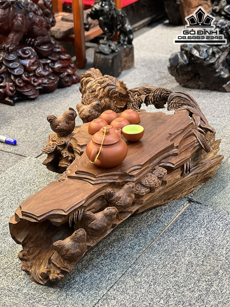 Khay Trà Gia Đình Gà Gỗ Trắc