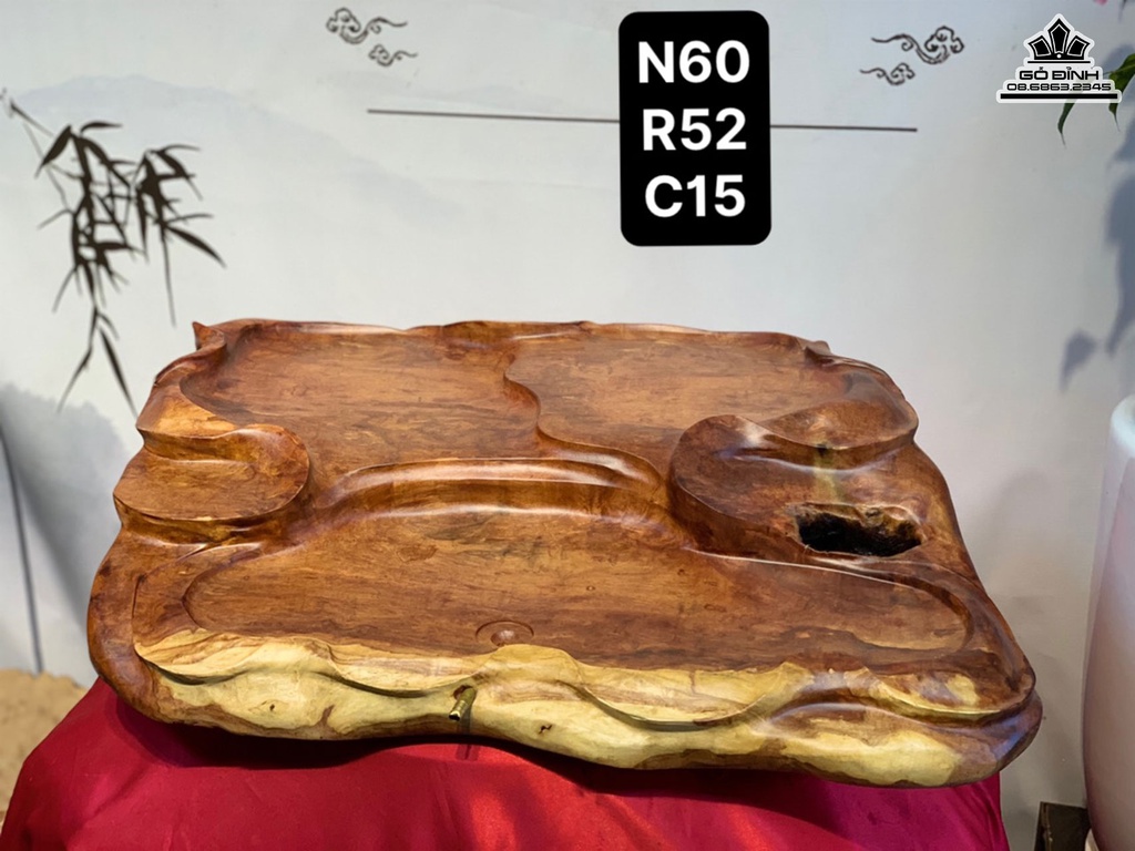 Khay Trà Gỗ Hương Liền Khối Dài 60 Rộng 52 Dày 15 (cm)