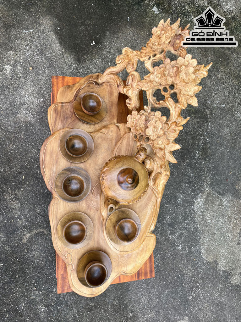 Khay Trà Hoa Mai Gỗ Ngọc Am Hà Giang