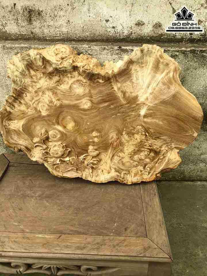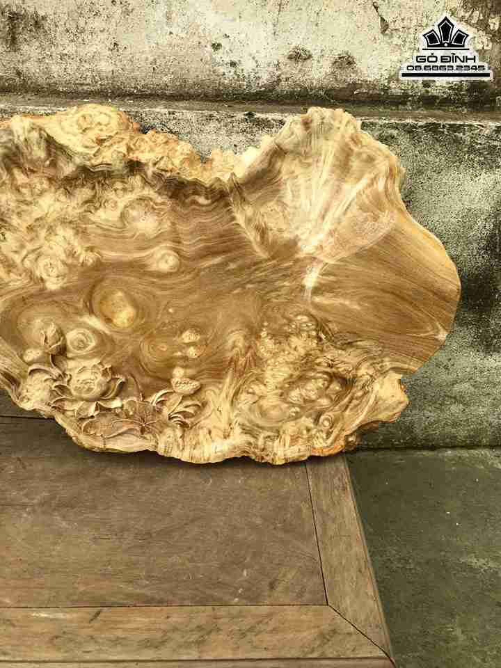 Khay Trà Hoa Sen Gỗ Nu Nghiến Cao 37 Ngang 50 Dày 4 (cm)