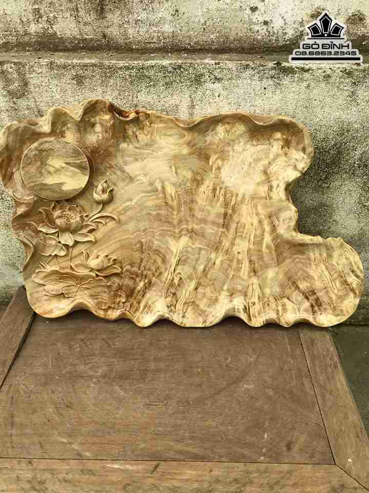Khay Trà Hoa Sen Gỗ Nu Nghiến Cao 31 Ngang 49.5 Dày 3 (cm)