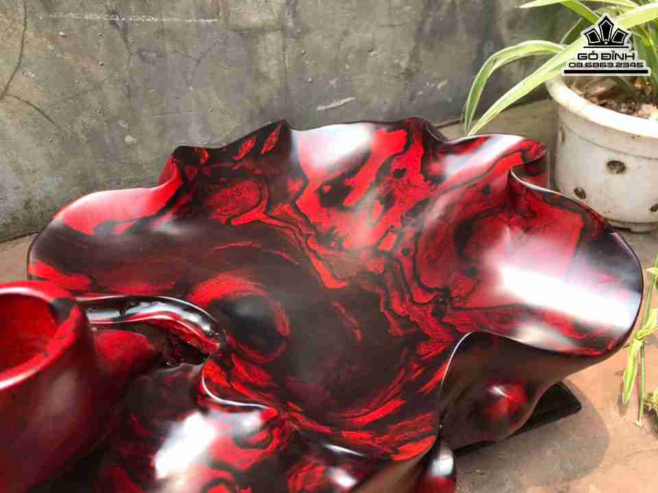 Khay Trà Lá Sen Gỗ Trắc Cao 16 Ngang 45 Sâu 35 (cm)