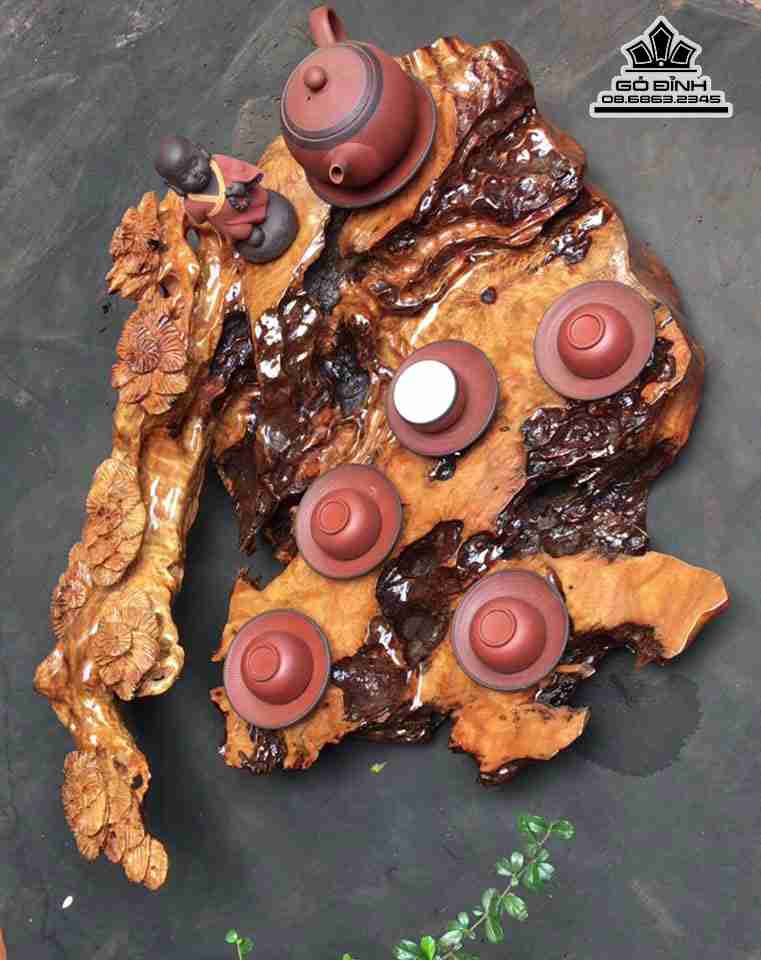 Khay Trà Nguyên Khối Gỗ Sụn Xá Xị ( Gù Hương ) Ngang 66 Rộng 54 Cao Nhất 20 (cm)