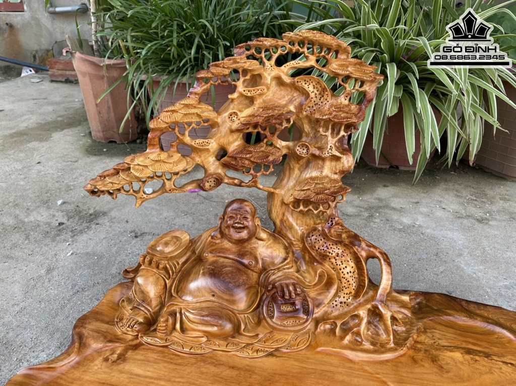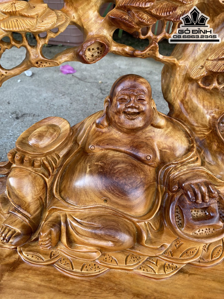 Khay Trà Phật Di Lặc Gỗ Hương Việt Liền Khối Cao 34 Ngang 67 Sâu 38 (cm)