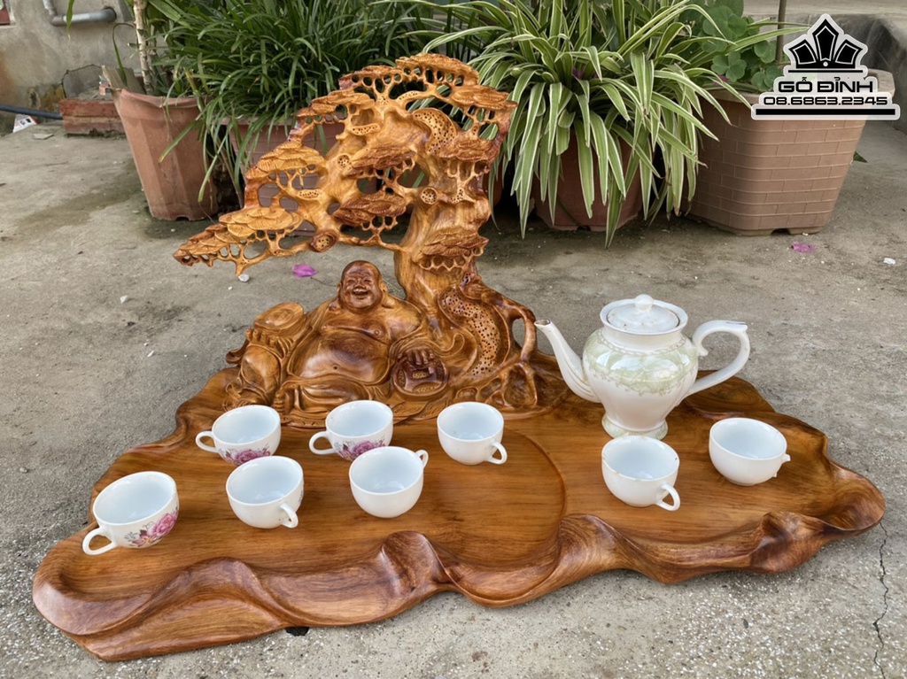 Khay Trà Phật Di Lặc Gỗ Hương Việt Liền Khối
