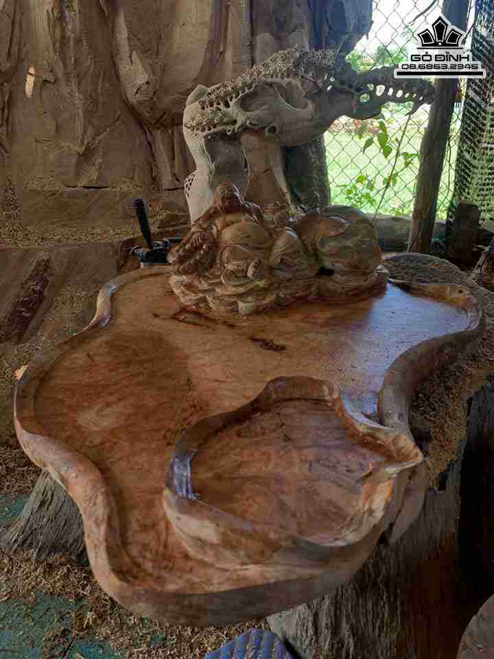 Khay Trà Phật Di Lặc Gỗ Nu Xá Xị ( Gù Hương ) Rộng 60 Ngang 80 Dày 7 (cm)