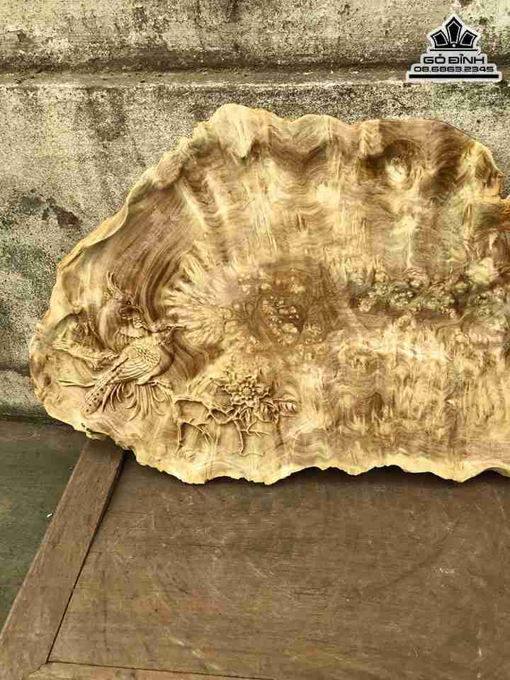 Khay Trà Song Điểu Gỗ Nu Nghiến Ngang 61 Cao 36 Dày 4 (cm)