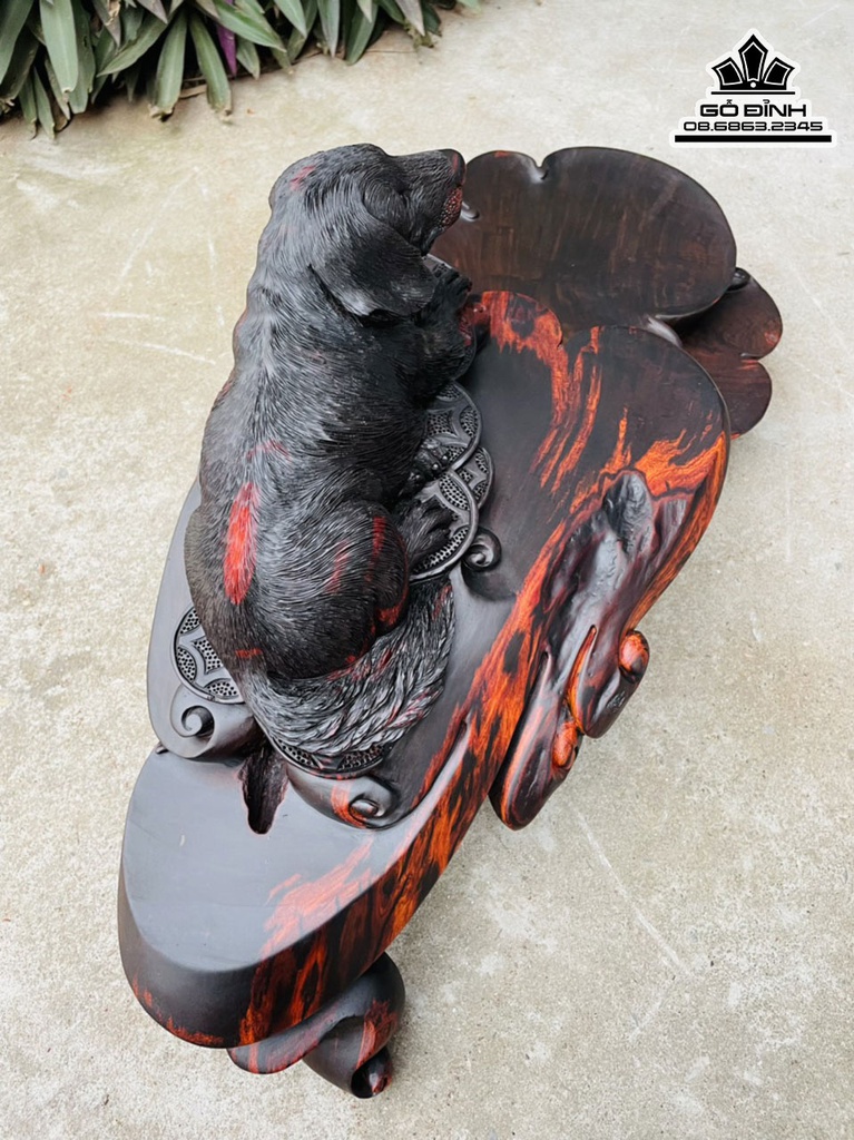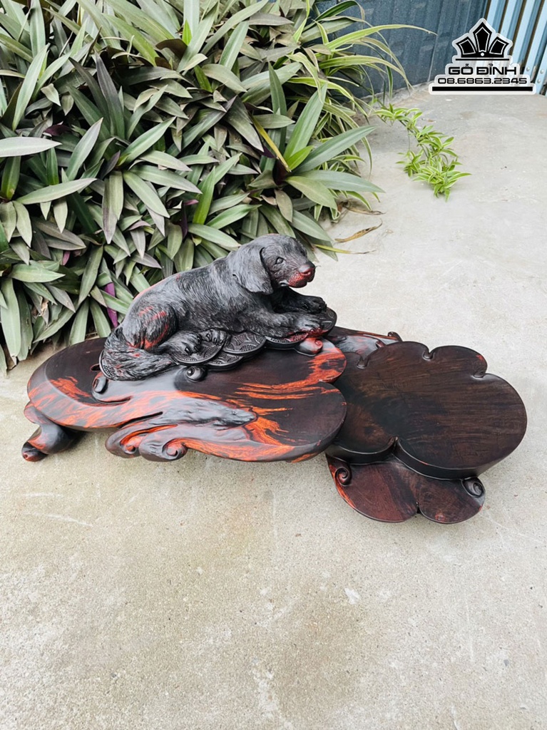 Khay Trà Tượng Chó Gỗ Trắc Việt
