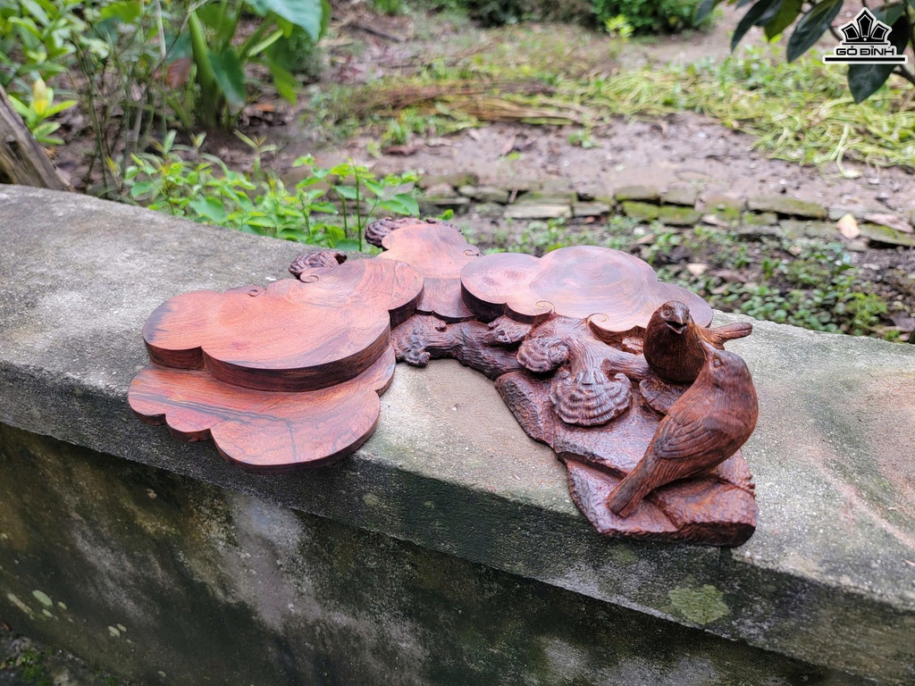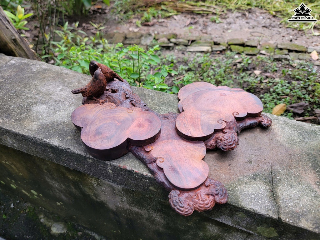 Khay Trà Uyên Ương Mai Điểu Gỗ Trắc Cao 10 Ngang 37 Sâu 33 (cm)