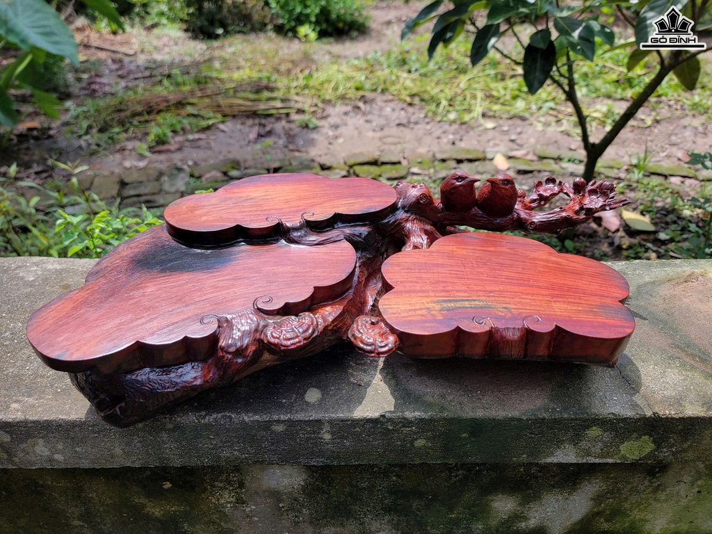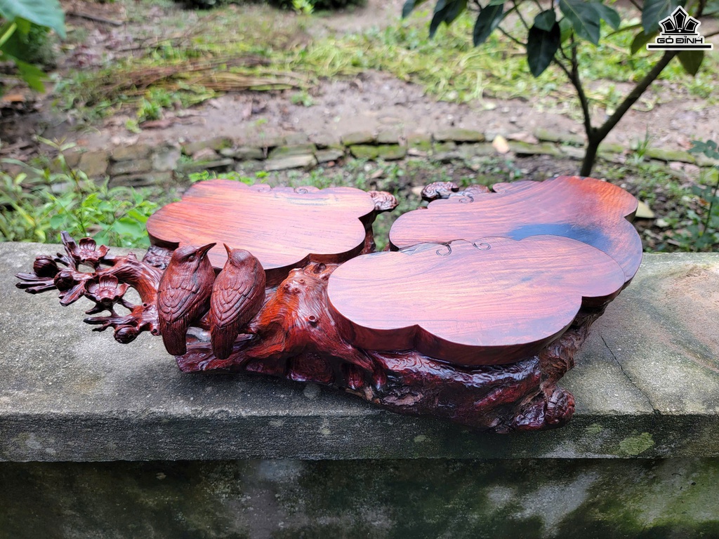 Khay Trà Uyên Ương Mai Điểu Gỗ Trắc Cao 11 Ngang 50 Sâu 26 (cm)