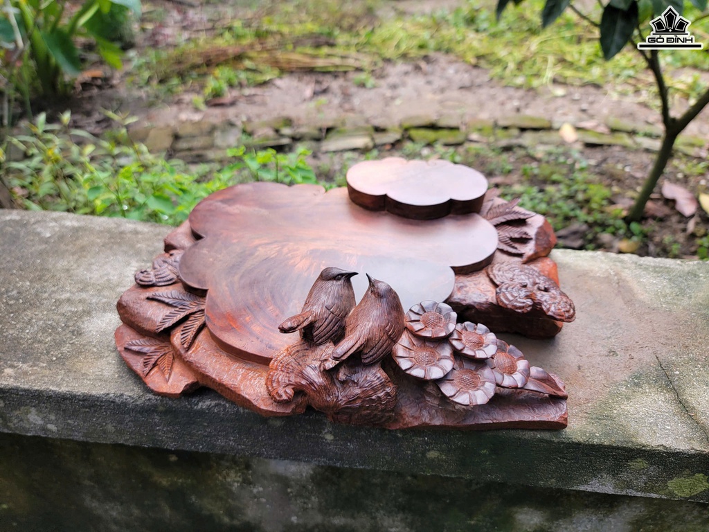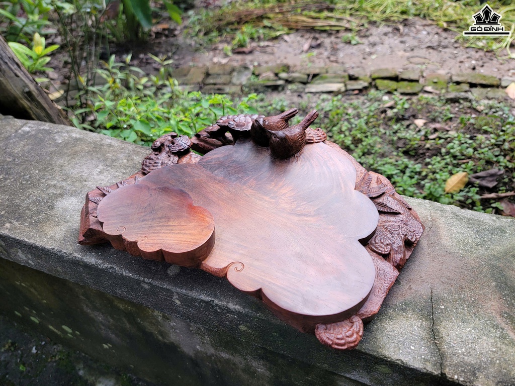Khay Trà Uyên Ương Mai Điểu Gỗ Trắc Cao 7 Ngang 35 Sâu 27 (cm)