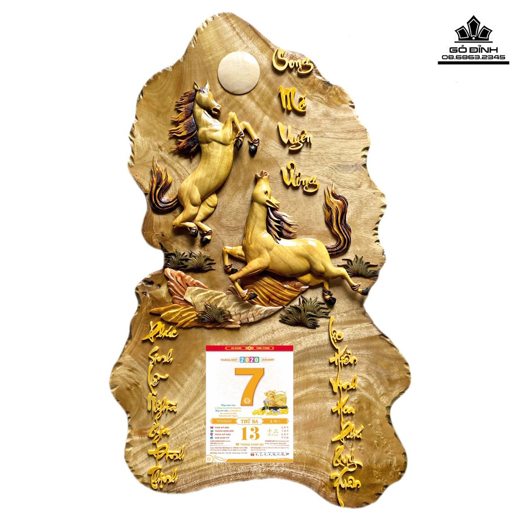 Lốc Lịch Song Mã Gỗ Nu Măn Cao 85 Ngang 55 Dày 2 (cm)