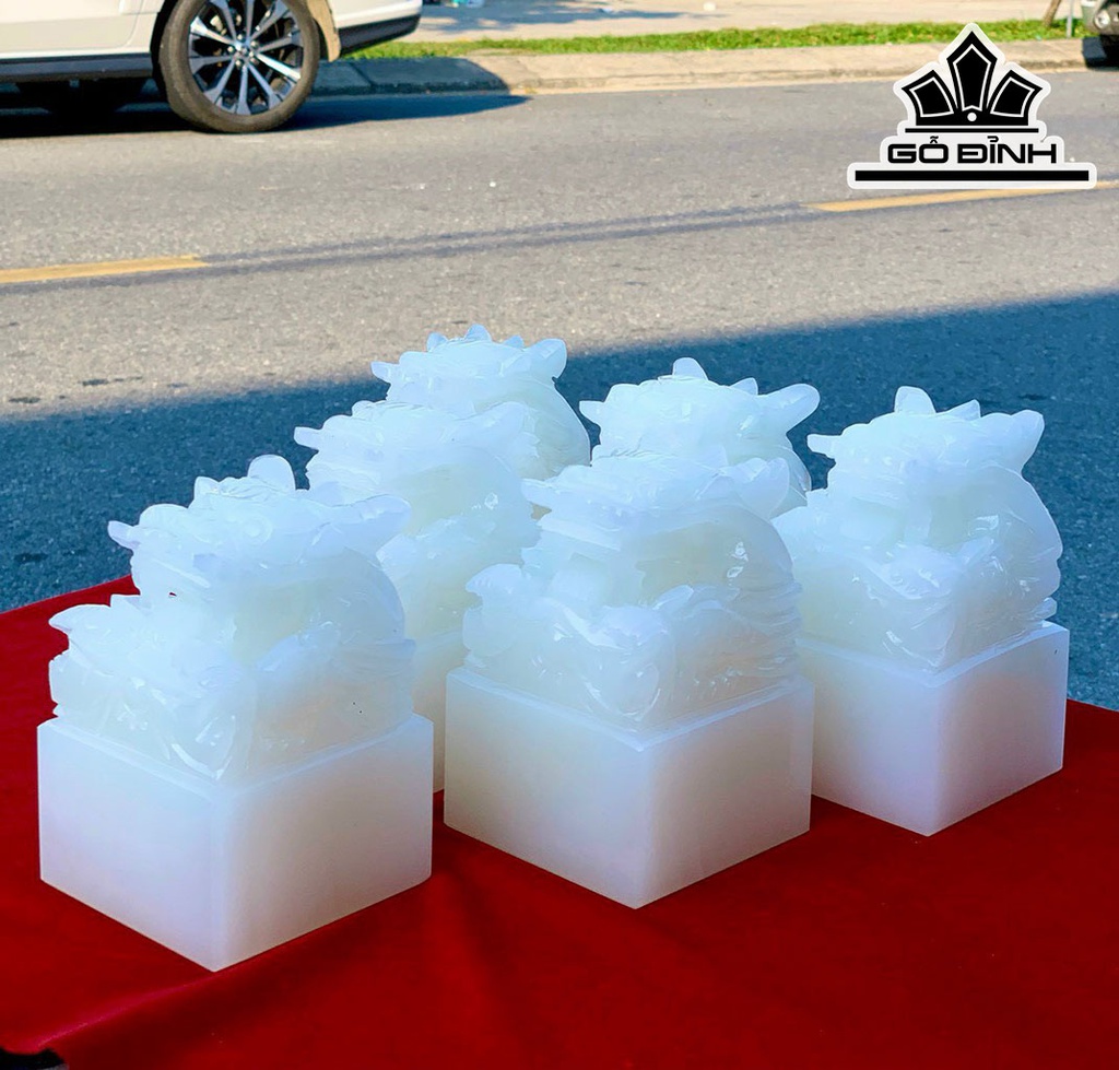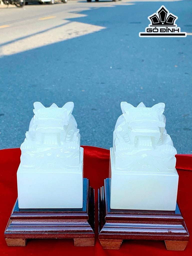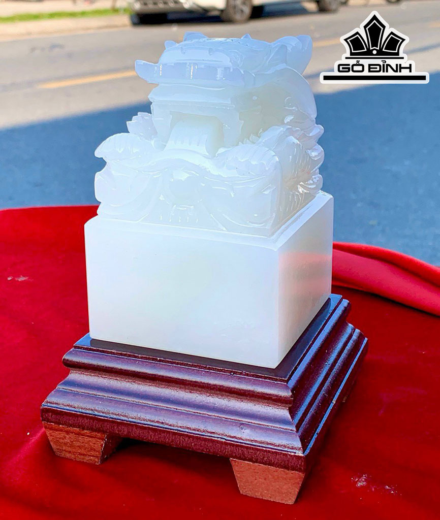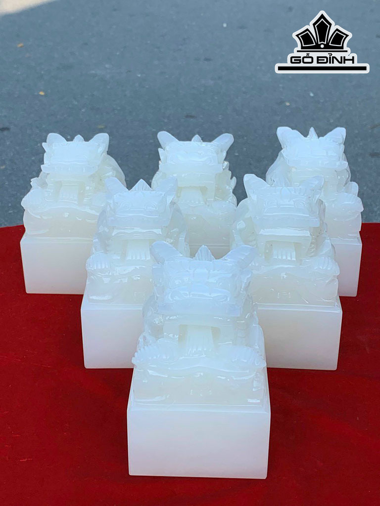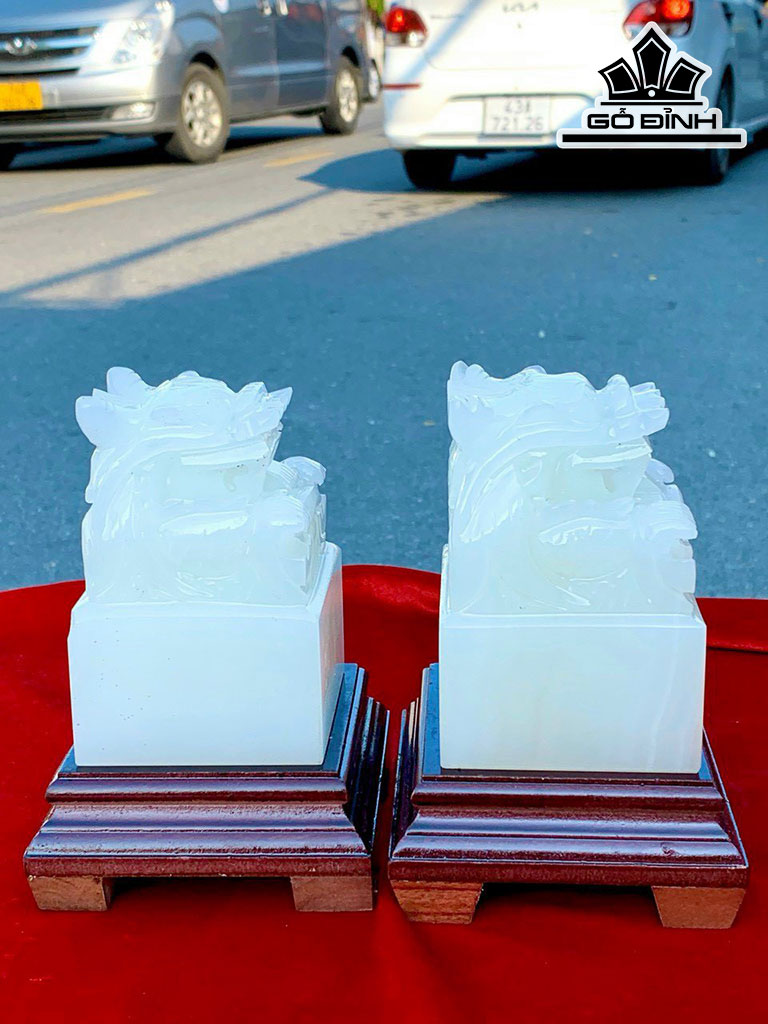 Long Ấn Đá Onyx Trắng Cao 12 Đế Vuông 8 (cm) 1,6kg