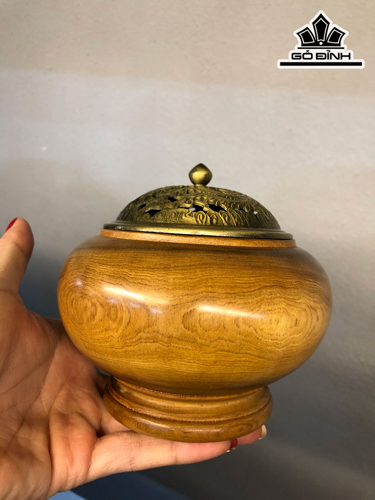 Lư Xông Trầm Gỗ Bách Xanh Cao 10 Đường Kính 11 (cm)