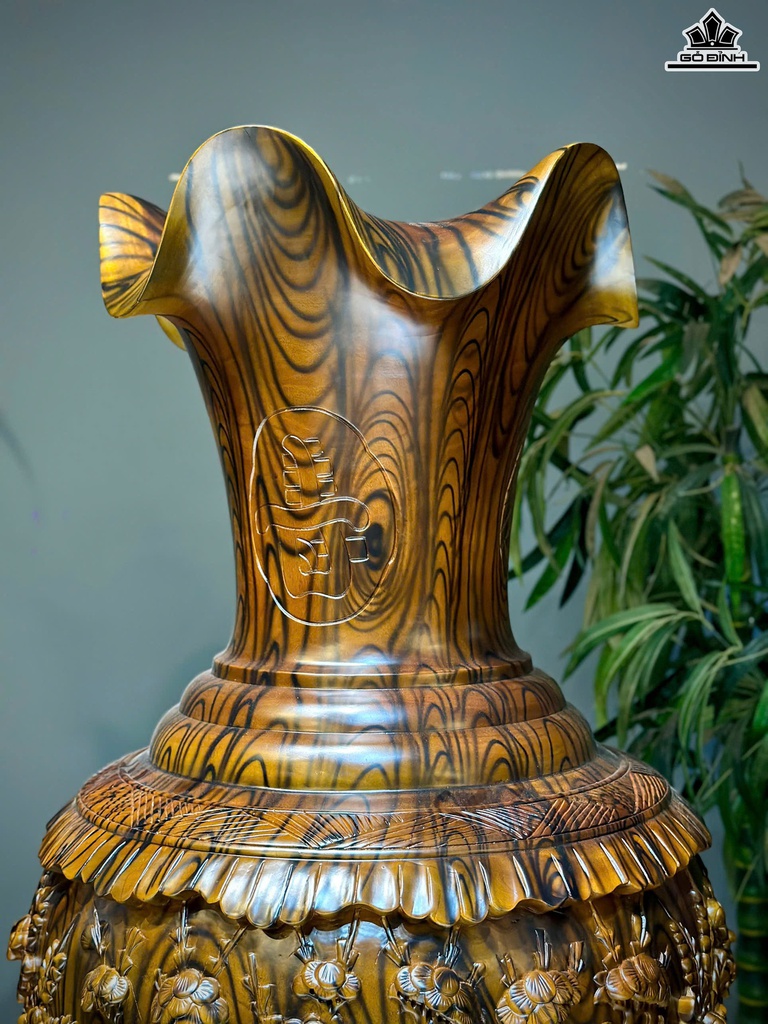Lục Bình Củ Tỏi Tùng Cúc Trúc Mai Gỗ Xà Cừ Cao 162 Đường Kính 60 (cm) - Đế Cao 51 (cm)