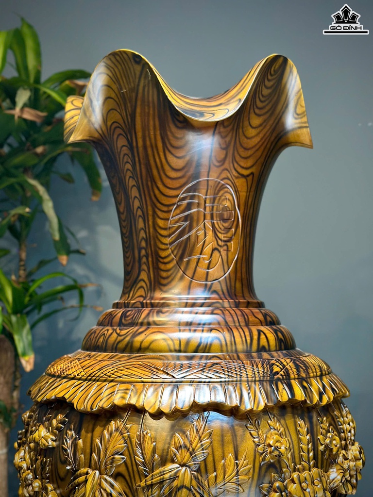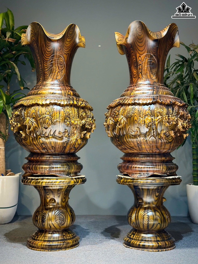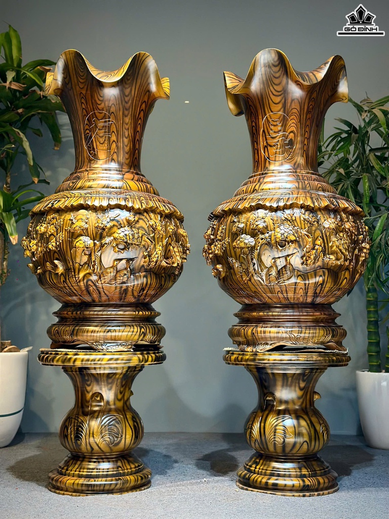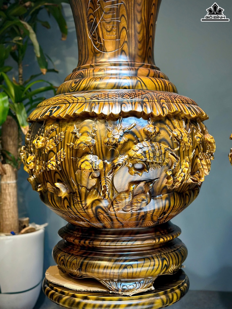Lục Bình Củ Tỏi Tùng Cúc Trúc Mai Gỗ Xà Cừ Cao 162 Đường Kính 60 (cm) - Đế Cao 51 (cm)