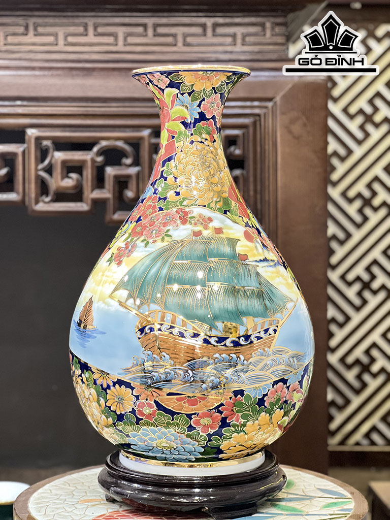 Lục Bình Thuận Buồm Xuôi Gió Gốm Bát Tràng Cao 55 Đường Kính 34 (cm)