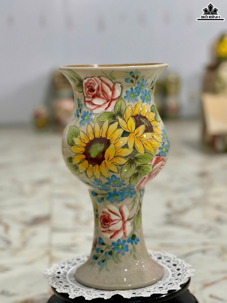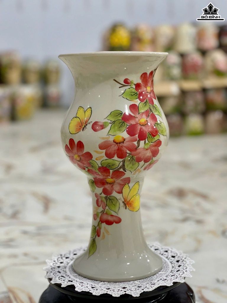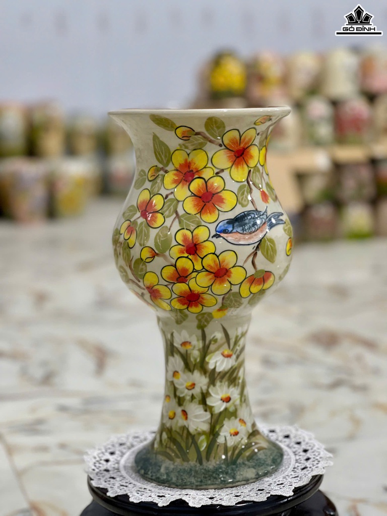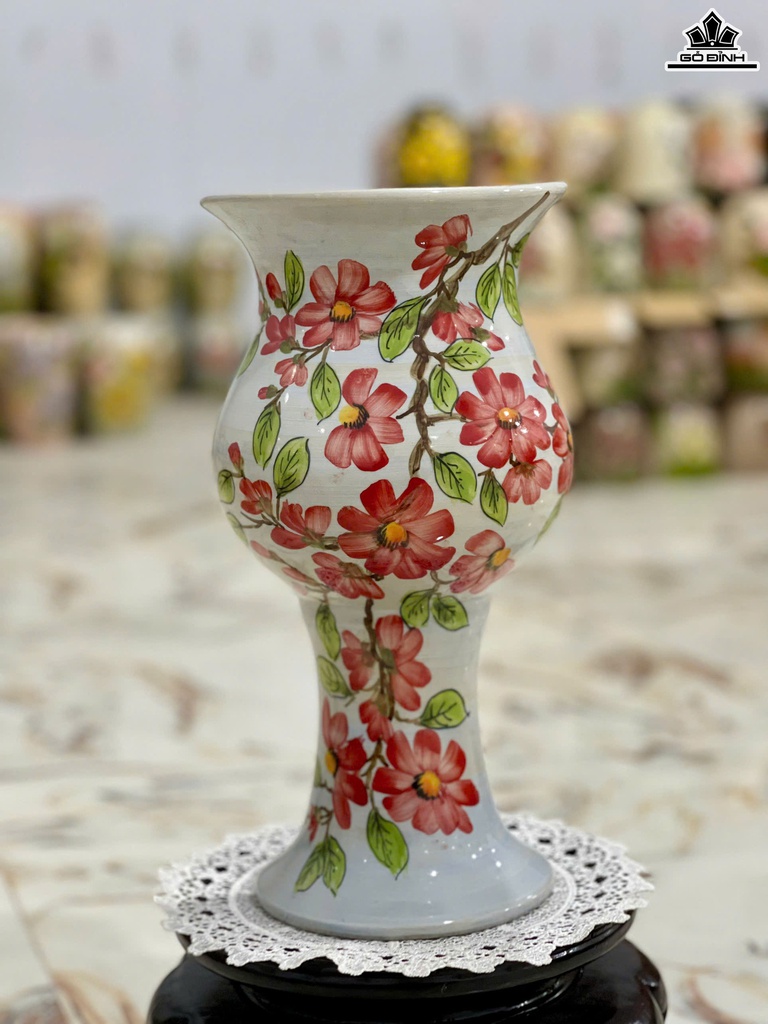 Ly Bầu Loe Trưng Bày Cắm Hoa Gốm Bát Tràng Cao 35 Đường Kính 18 ( cm )