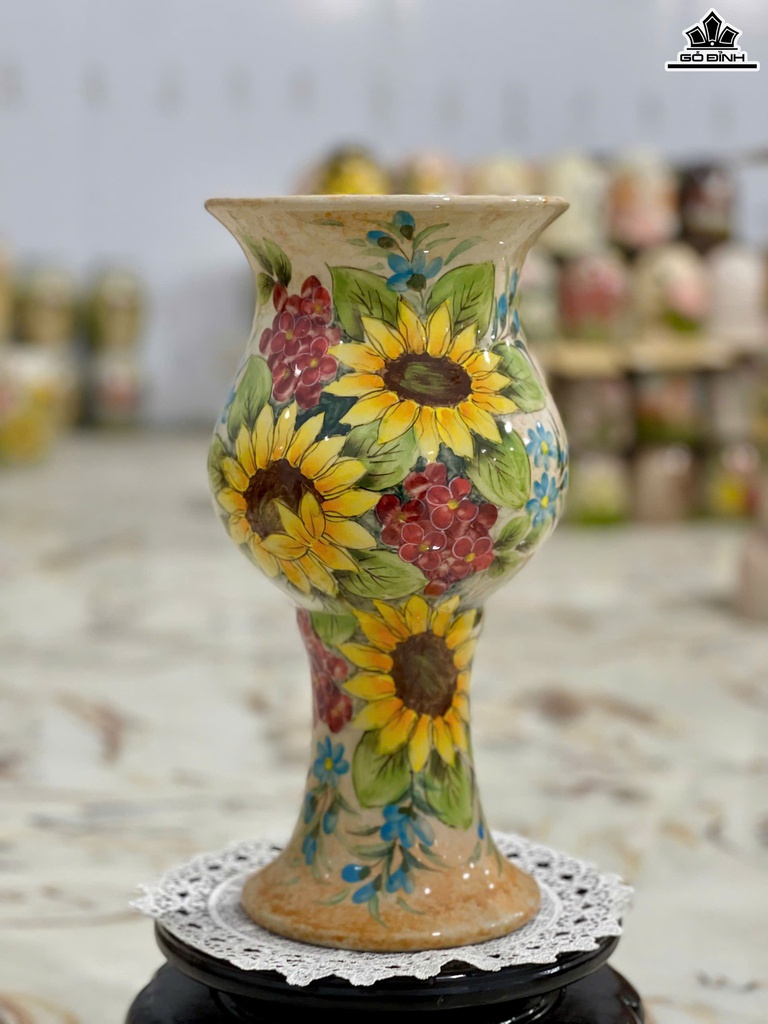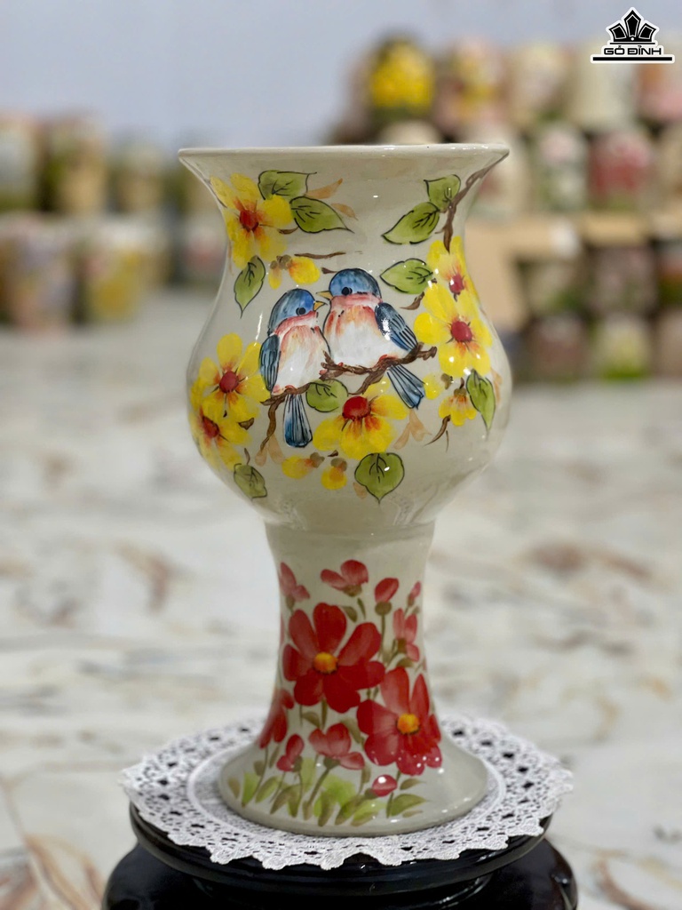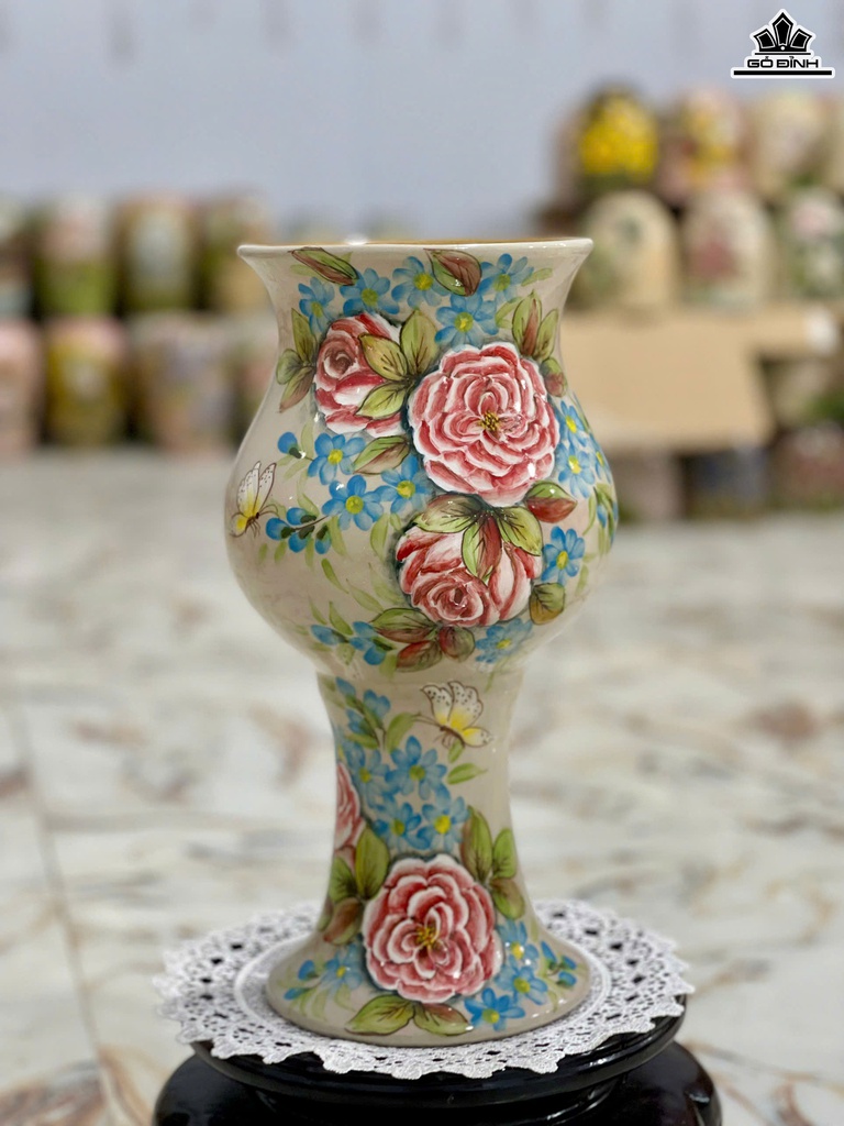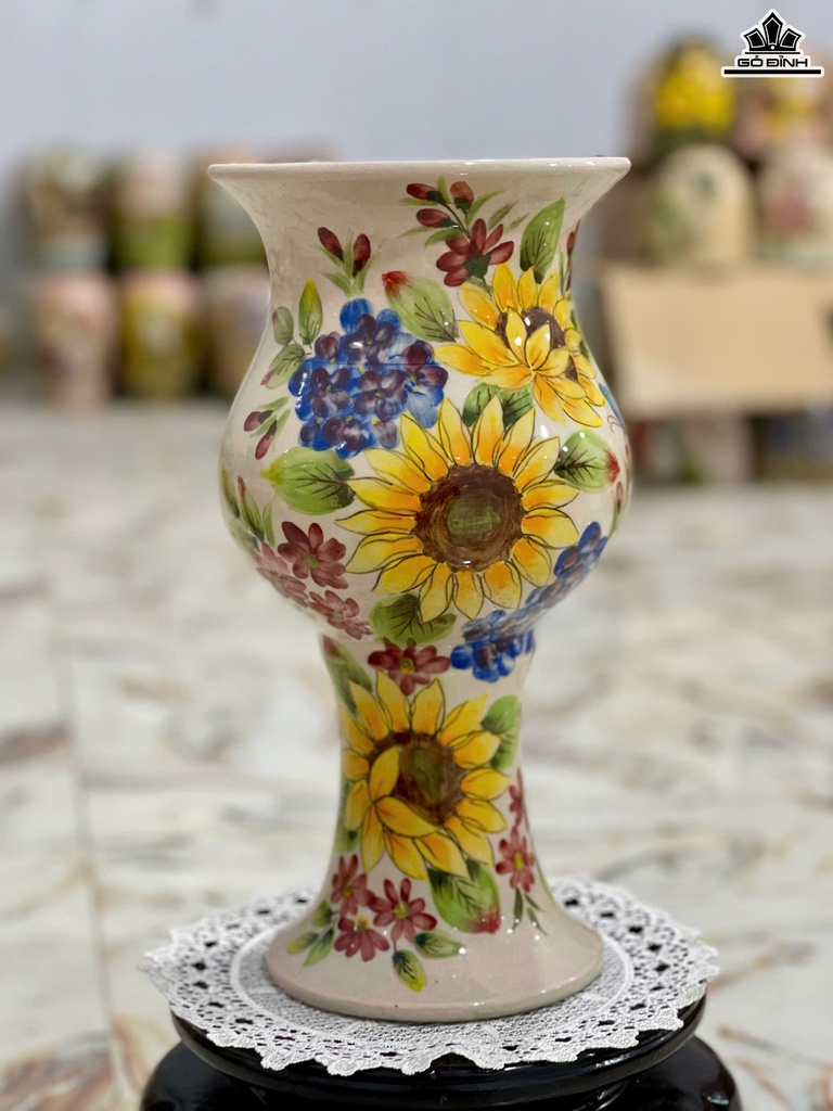 Ly Bầu Loe Trưng Bày Cắm Hoa Gốm Bát Tràng Cao 35 Đường Kính 18 ( cm )