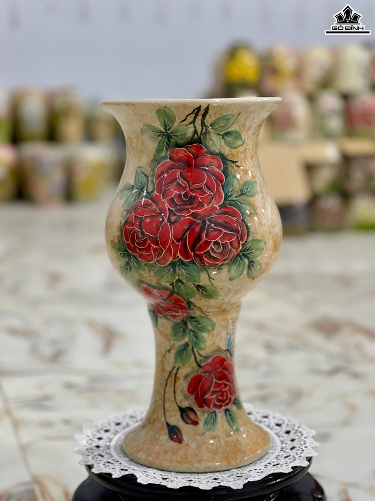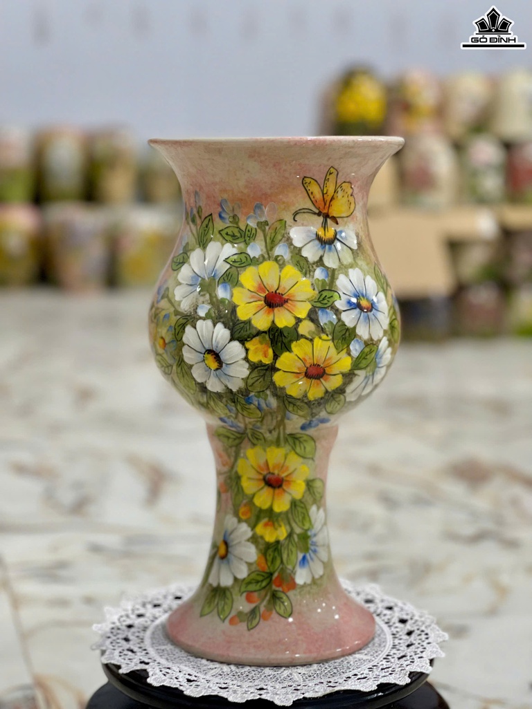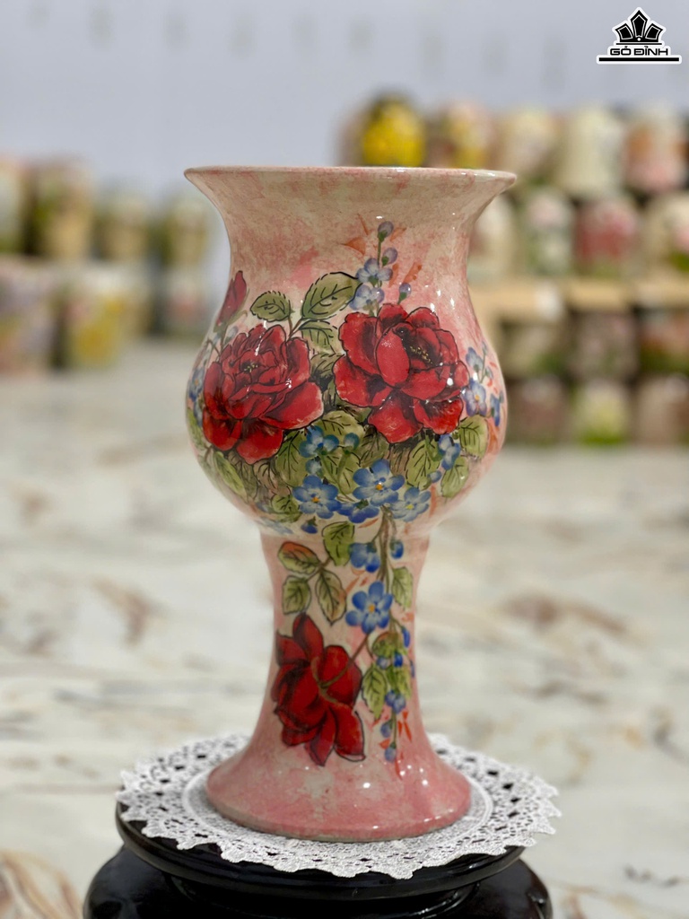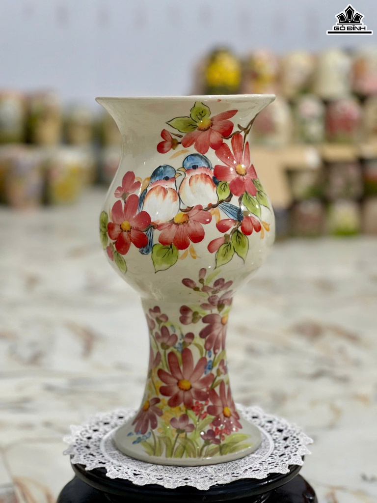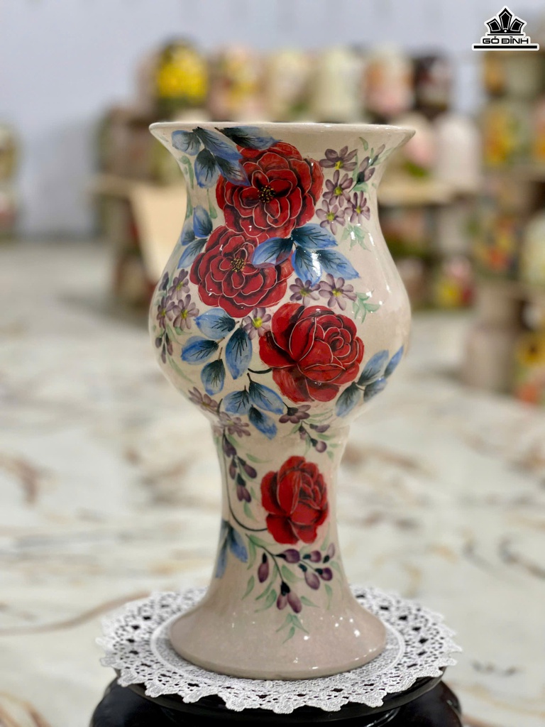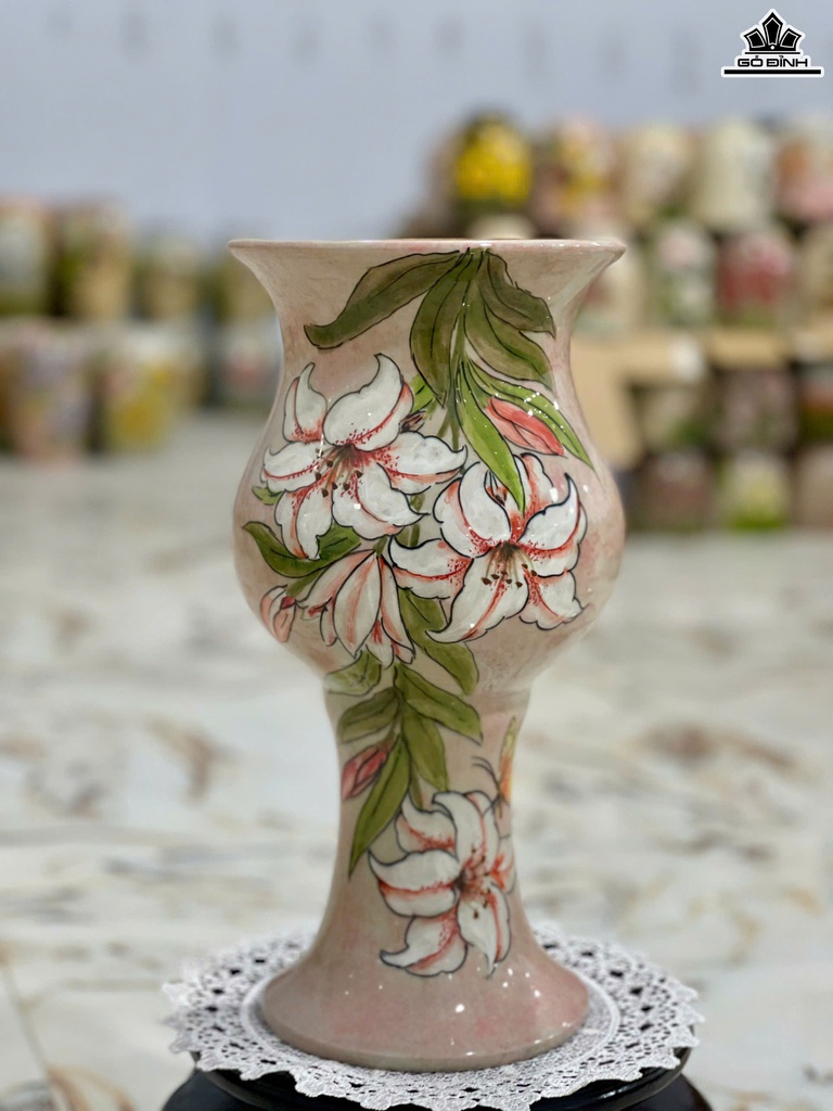 Ly Bầu Loe Trưng Bày Cắm Hoa Gốm Bát Tràng Cao 35 Đường Kính 18 (cm )