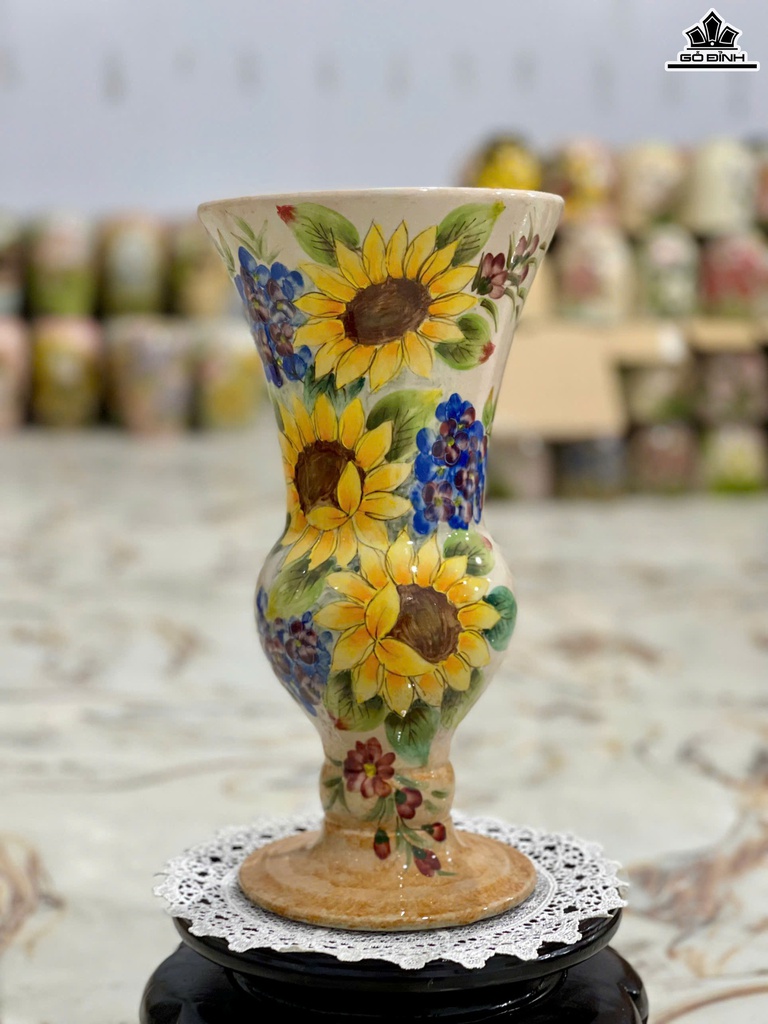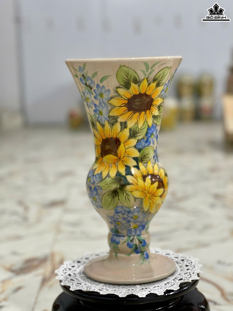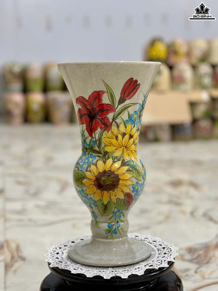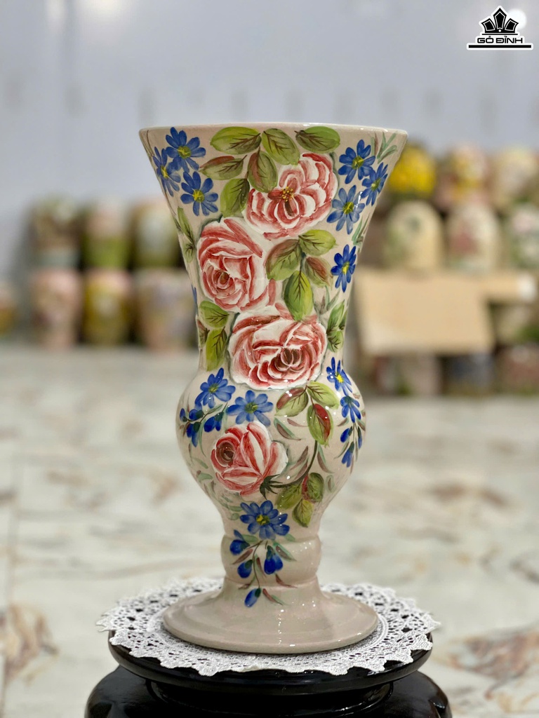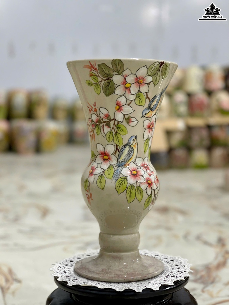 Ly Loe Trưng Bày Cắm Hoa Gốm Bát Tràng Cao 35 Đường Kính 18 ( cm )