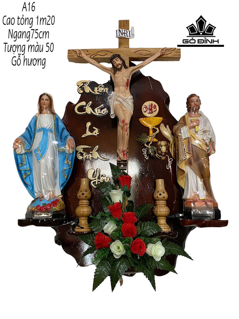 Mã A16 - Bàn Thờ Công Giáo Gỗ Hương - Cao Tổng 120 Ngang 75 Tượng Màu 50 (cm)