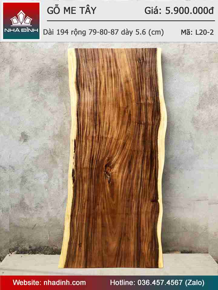 Mặt Bàn Gỗ Me Tây Nguyên Khối Dài 194 Rộng 79-80-87 Dày 5.6 (cm)