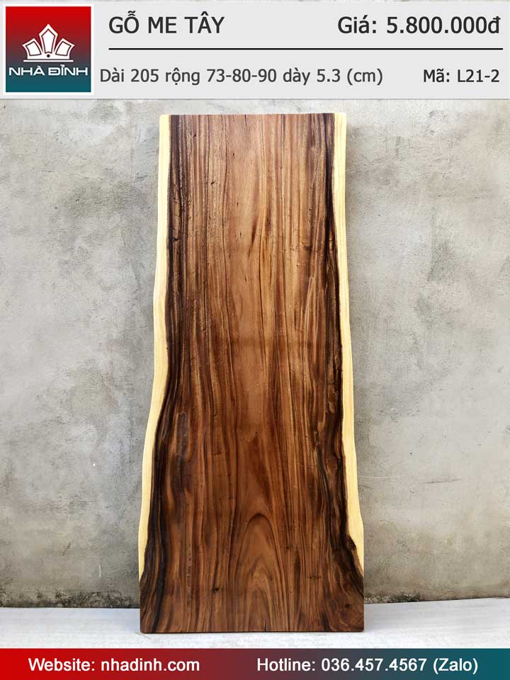 Mặt Bàn Gỗ Me Tây Nguyên Khối Dài 205 Rộng 73-80-90 Dày 5,3 (cm)
