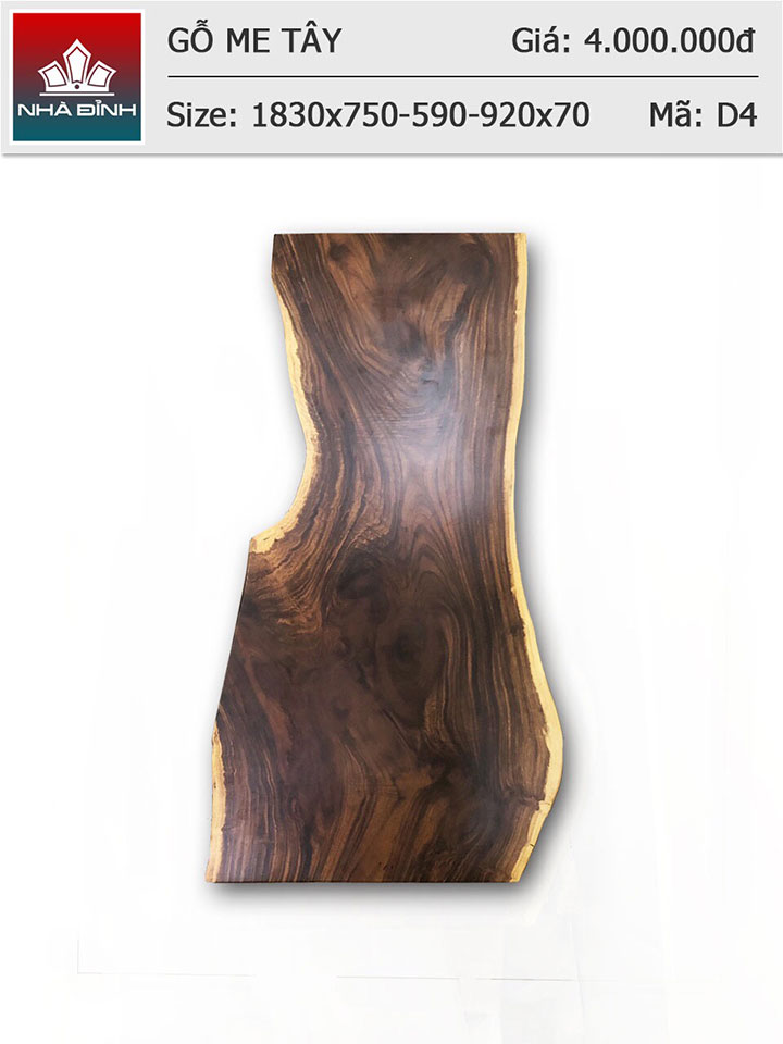 Mặt bàn gỗ Me Tây nguyên khối dài 1m83 rộng 75 - 59 - 92 dày 7 (cm)