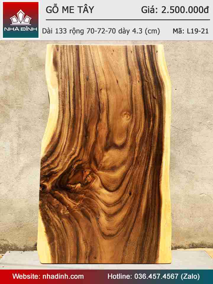 Mặt Bàn Gỗ Me Tây Nguyên Khối Dài 133 Rộng 70-72-70 Dày 4,3 (cm)