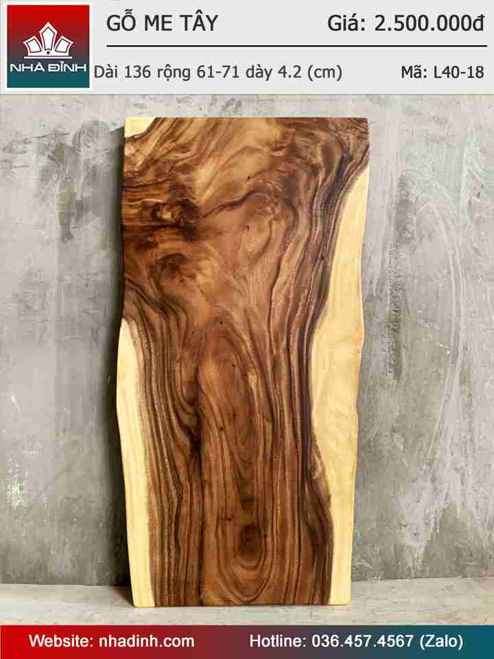 Mặt Bàn Gỗ Me Tây Nguyên Khối Dài 136 Rộng 61-71 Dày 4,2 (cm)