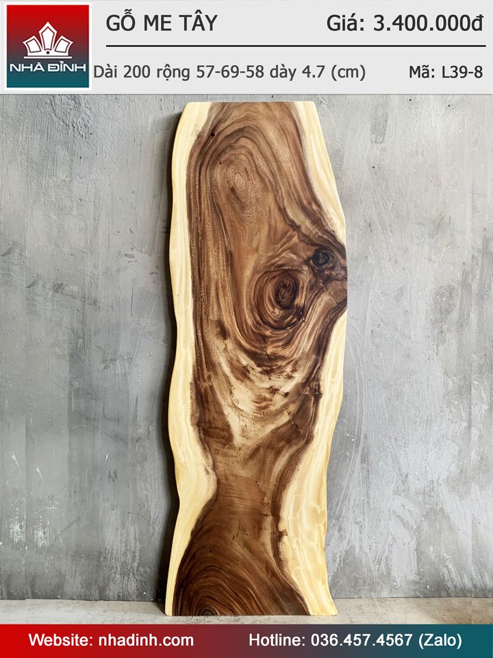 Mặt Bàn Gỗ Me Tây Nguyên Khối Dài 200 Rộng 57-69-58 Dày 4,7 (cm)