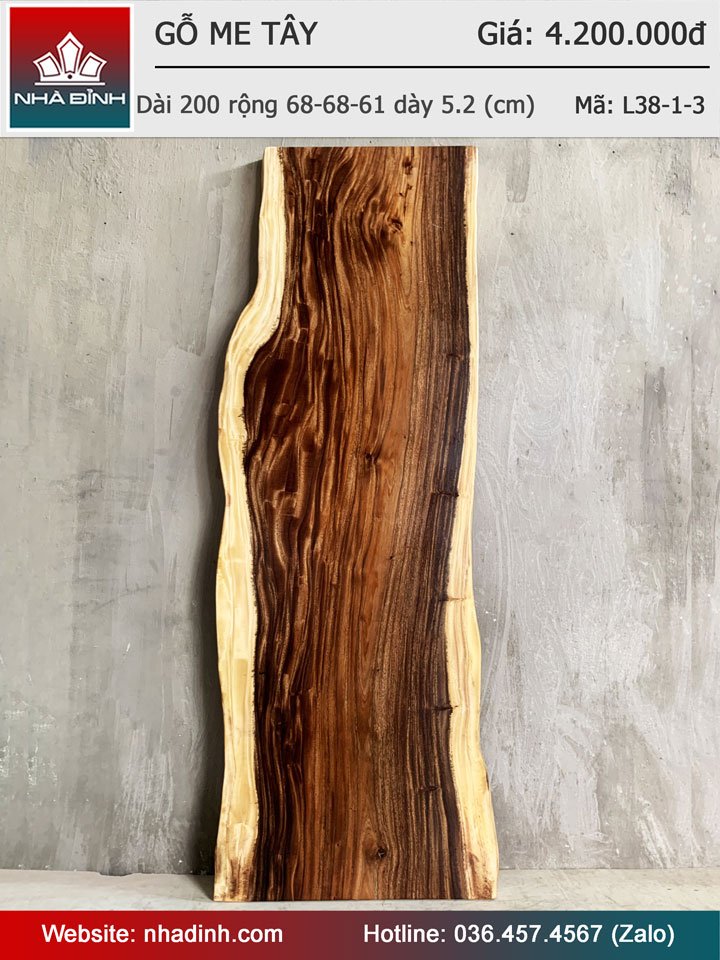 Mặt Bàn Gỗ Me Tây Nguyên Khối Dài 200 Rộng 68-68-61 Dày 5,2 (cm)