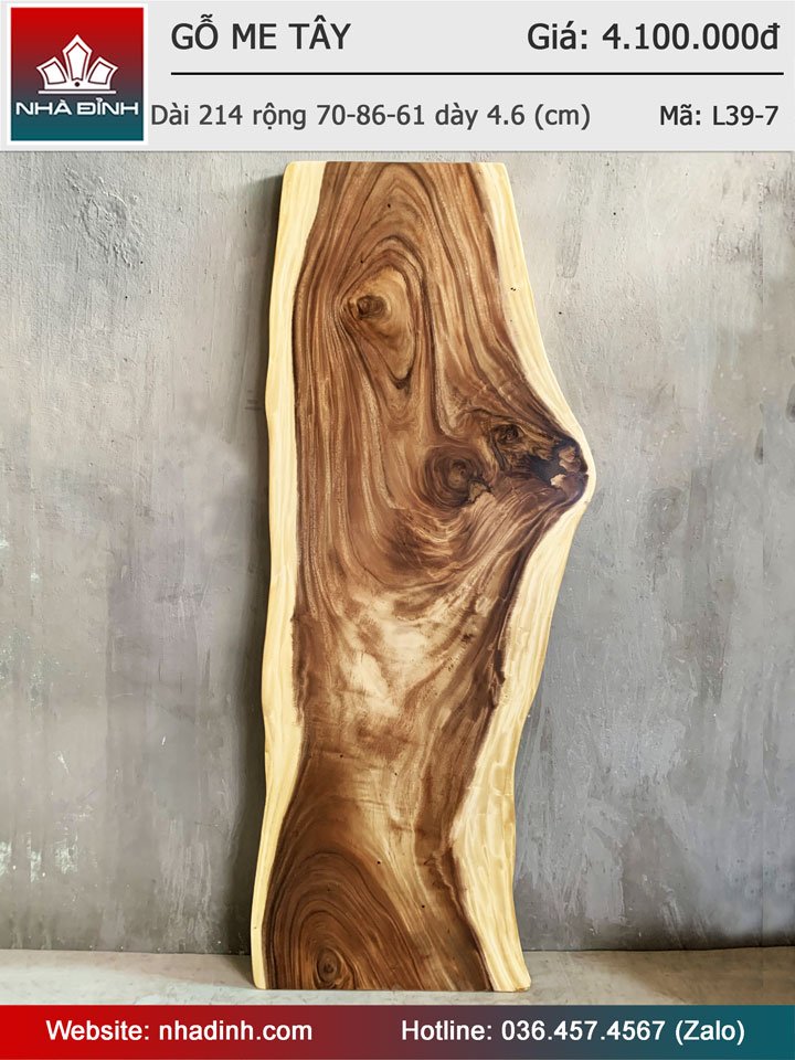 Mặt Bàn Gỗ Me Tây Nguyên Khối Dài 214 Rộng 70-86-61 Dày 4,6 (cm)