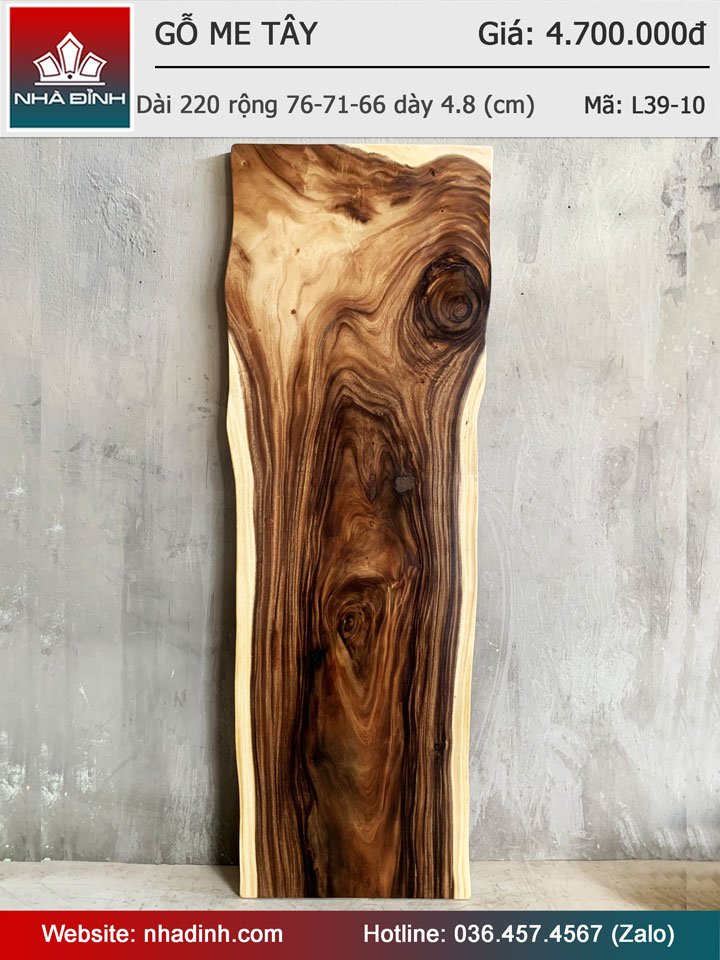 Mặt Bàn Gỗ Me Tây Nguyên Khối Dài 220 Rộng 76-71-66 Dày 4,8 (cm)