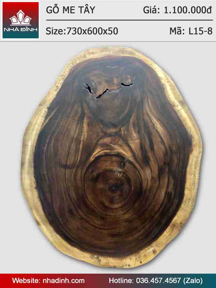 Mặt bàn gỗ Me Tây nguyên khối đường kính 730-600 dày 50 (mm)