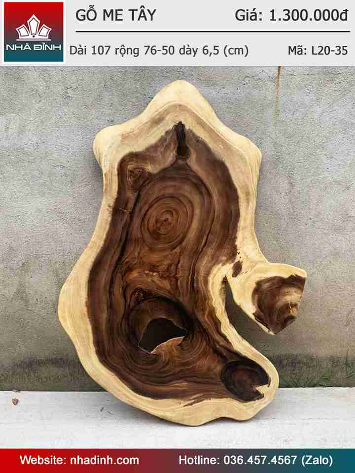 Mặt Bàn Gỗ Me Tây Nguyên Tấm Dài 107 Rộng 76-50 Dày 5 (cm)