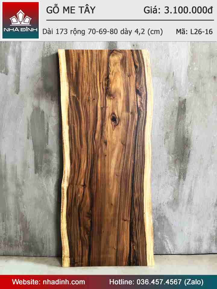 Mặt Bàn Gỗ Me Tây Nguyên Tấm Dài 173 Rộng 70-69-80 Dày 4,2 (cm)