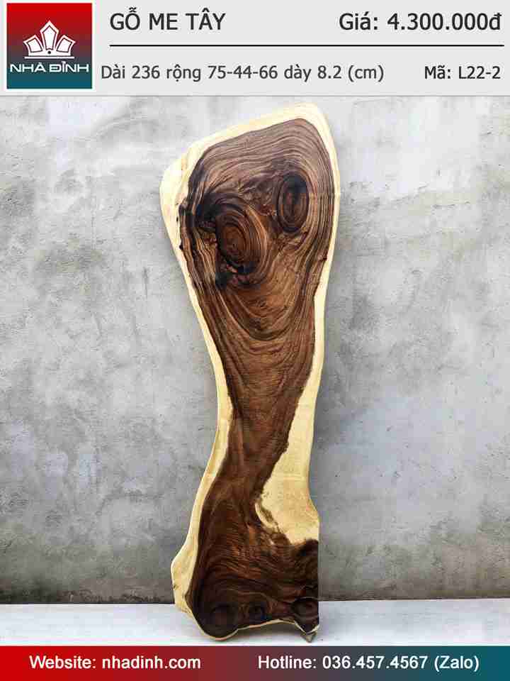 Mặt Bàn Gỗ Me Tây Nguyên Tấm Dài 236 Rộng 75-44-44 Dày 8,2 (cm)