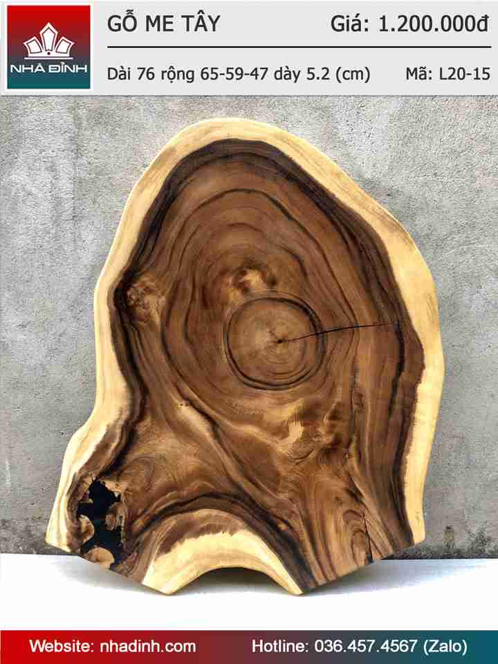 Mặt bàn Sofa, bàn Trà gỗ Me Tây nguyên khối Dài 76 rộng 65 - 59 - 47 dày 5.2 (cm)