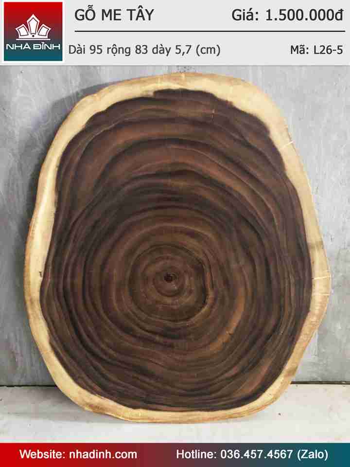 Mặt Bàn Sofa Gỗ Me Tây Nguyên Khối Dài 95 Rộng 83 Dày 5,7 (cm)