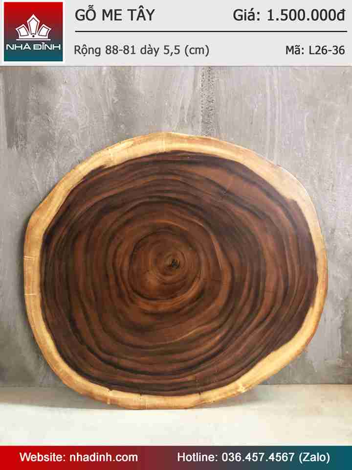 Mặt Bàn Sofa Gỗ Me Tây Nguyên Khối Rộng 88-81 Dày 5,5 (cm)