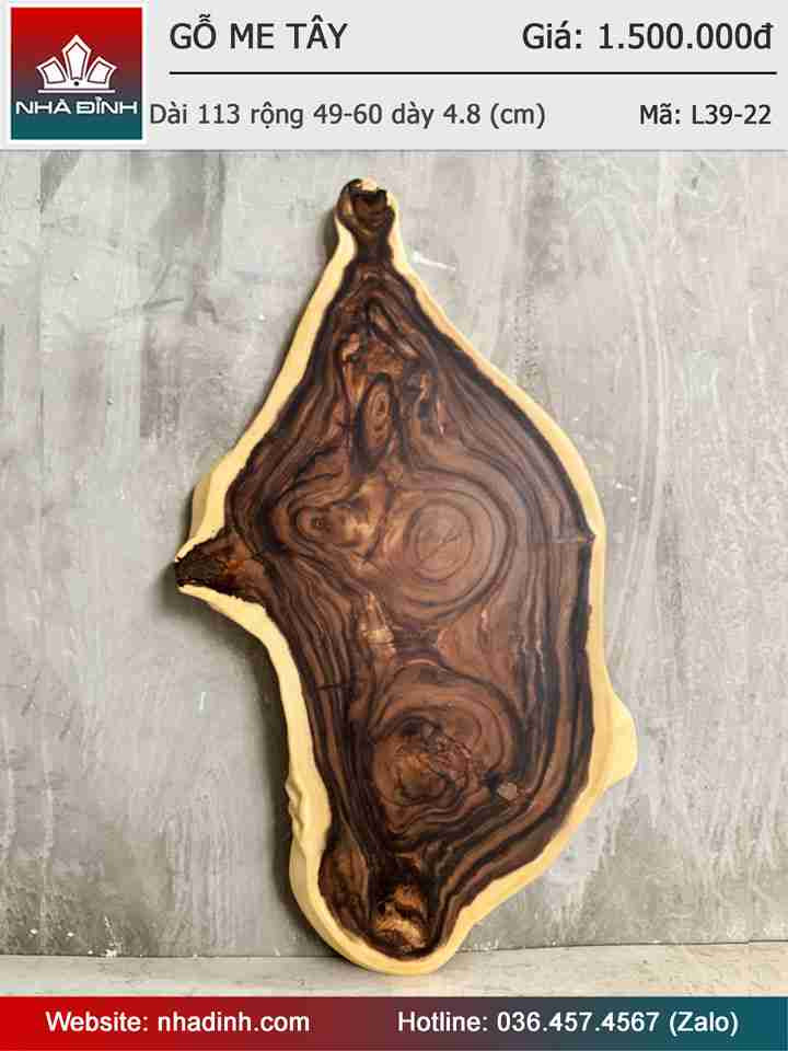 Mặt Bàn Trà Gỗ Me Tây Nguyên Khối Dài 113 Rộng 49-60 Dày 4,8 (cm)
