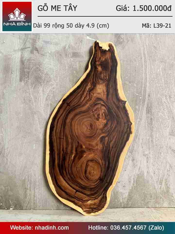 Mặt Bàn Trà Gỗ Me Tây Nguyên Khối Dài 99 Rộng 50 Dày 4,9 (cm)
