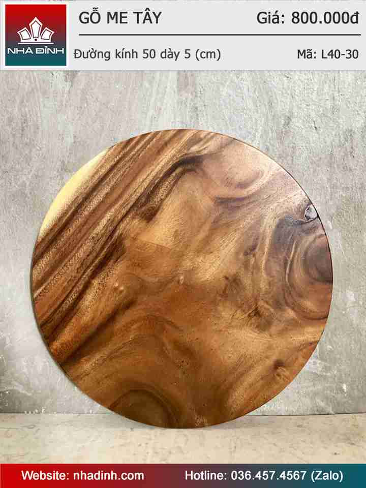 Mặt Bàn Tròn Gỗ Me Tây Nguyên Khối Đường Kính 50 Dày 5 (cm)