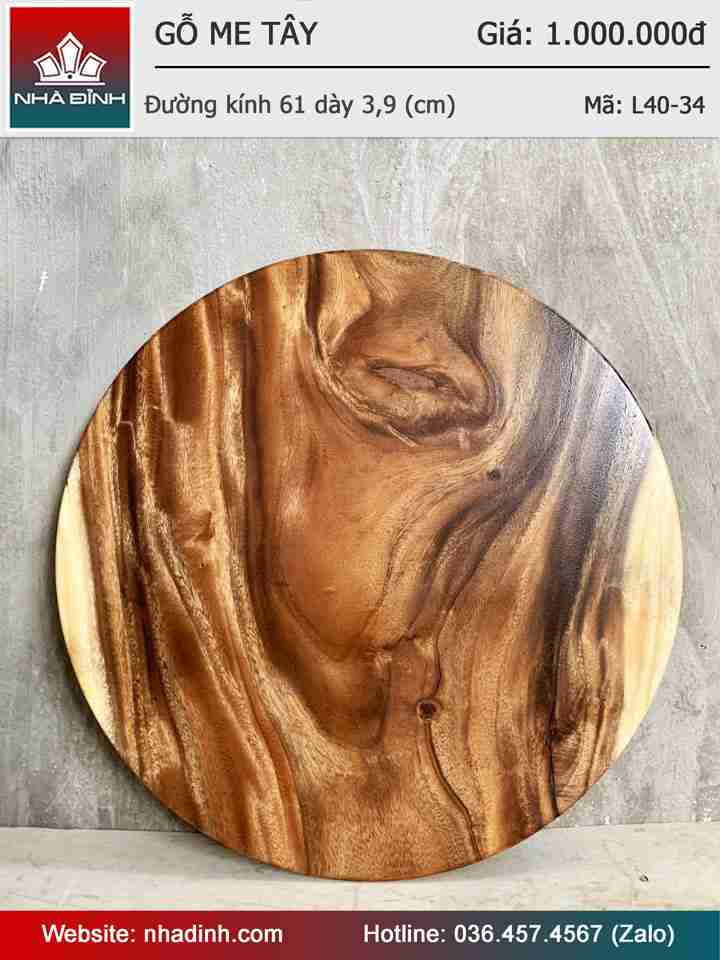 Mặt Bàn Tròn Gỗ Me Tây Nguyên Khối Đường Kính 61 Dày 3,9 (cm)
