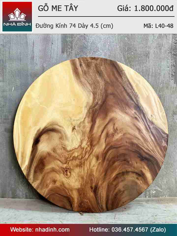 Mặt Bàn Tròn Gỗ Me Tây Nguyên Khối Đường Kính 74 Dày 4.5 (cm)