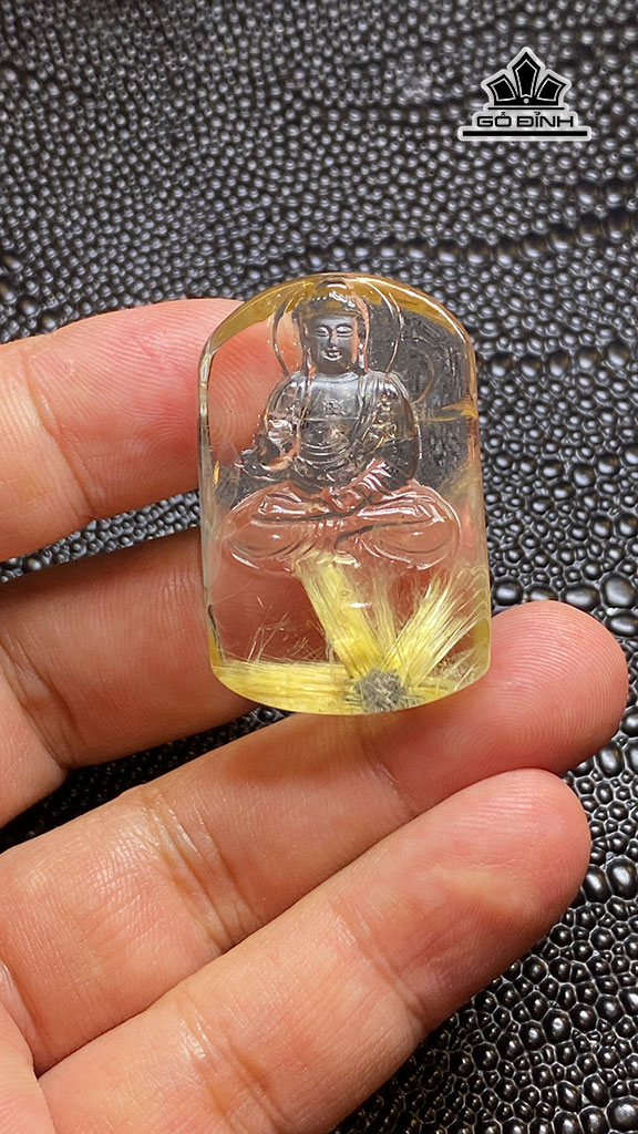 Mặt Dây Chuyền Adida Hoa Thị Đá Thạch Anh Tóc Vàng Cao 38 Ngang 24,5 Sâu 11 (mm) 19g