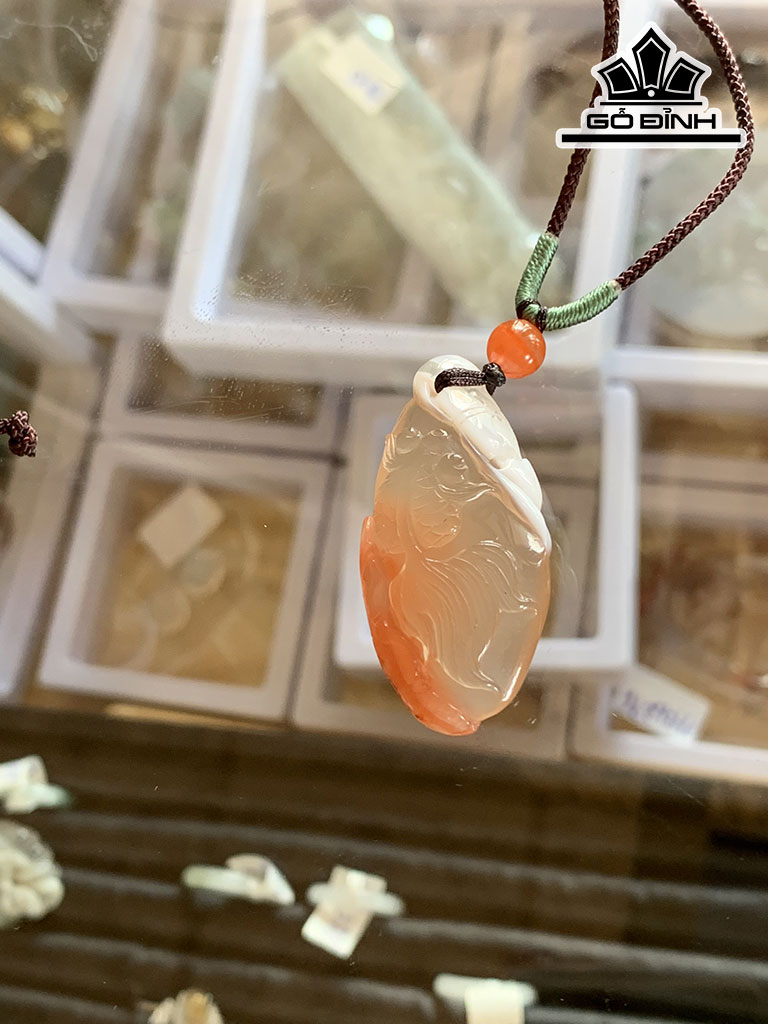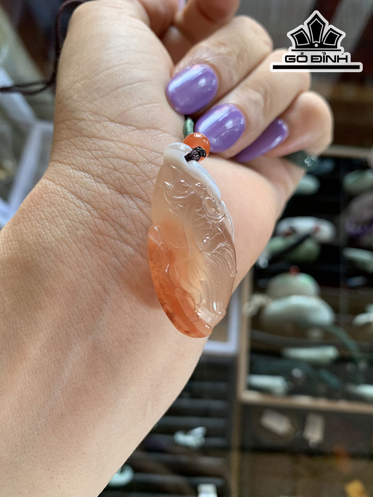 Mặt Dây Chuyền Cá Băng Đá Mã Não Nam Hồng Cao 38,2 Ngang 18,8 Sâu 11,1 (mm) 10,6g